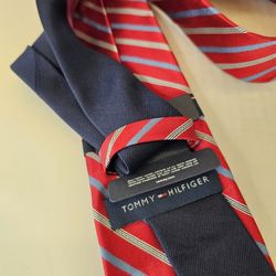 New Tommy Hilfiger Classic Red Blue White Striped Neck Tie – Flame Red Silk Style Designer Mens Tie$13San Diego, CA