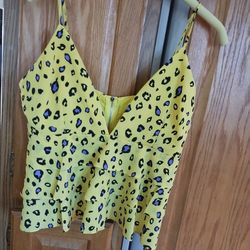 Super Down Halter Top Layered Soft Ruffle Yellow Cheetah Print Adjustable Straps New Size M$8San Diego, CA
