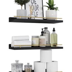 Floating Shelves with Gold Metal Guardrail, Shelves for Wall Decor Set of 3, Wall Shelves for Bedroom, Bathroom, Kitchen, Living Room, Plants, Picture$25Bonita, CA