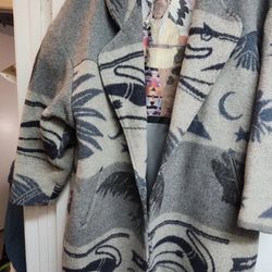 Pioneer Wear South Western Aztec Woman's, Size XL Long Coat Wool Gray Beige$395San Diego, CA