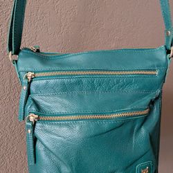 Genuine leather green crossbody purse with several zippered pockets like new$15Ramona, CA