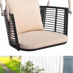 Wicker Porch Swing Patio Hanging Rattan Chair with Rope and Beige Zippered Cushions$80Chula Vista, CA