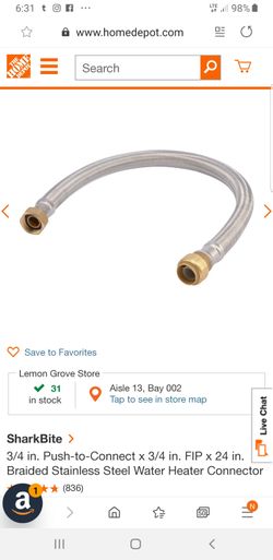 X2-SharkBite 3/4 in. Push-to-Connect x 3/4 in. FIP x 24 in. Water Heater Connector$25Spring Valley, CA