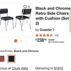 New In Box Black and Chrome Retro Side Chairs with Cushion (Set of 2) Vintage Diner Theme$175Chula Vista, CA