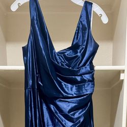 Iliana Cowl Neck High Slit Satin Dress - Navy Blue$50San Diego, CA