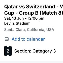 Qatar vs Switzerland 2 tickets Section: Category 3$420Santa Clara, CA
