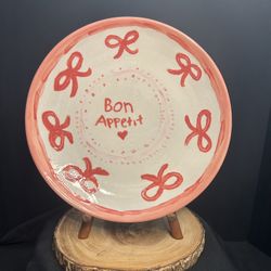 Bon Appetit & Bows Pink and White Handmade Stoneware Plate 11in$32Brentwood, CA