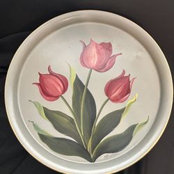 Vintage Round Metal Hand Painted Tole Tulip Tray 17in$22Brentwood, CA