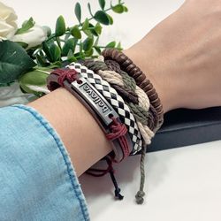 Adjustable Size up to 9.5inc Braided Multi-layer Leather Bracelet (Set of 4), Believe$8San Jose, CA