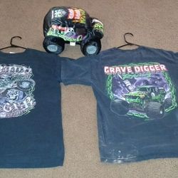 Monster Jam Grave Digger Bundle. Both shirts are a size large mens. Includes Official Monster Jam Grave Diggers plush.$100Stockton, CA