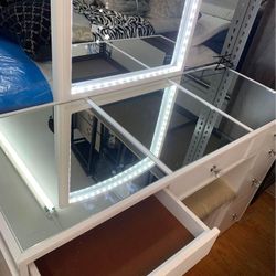 Modern White Vanity Desk w/ LED Lighted Mirror + Chair$200French Camp, CA