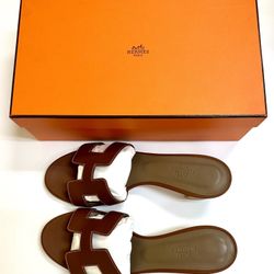 New 38 HERMES ORAN OASIS H SANDALS HEEL CLASSIC CALFSKIN GOLD BROWN$749Milpitas, CA
