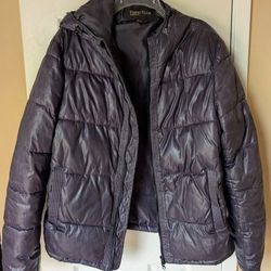 Perry Ellis warm winter puffer jacket with hood, women XL or men L$20San Jose, CA
