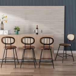 Counter Stools Rattan Back Dining Chair, Indoor Faux Leather Bar Stools Set of 4, Armless Dining Chairs with Rattan Backrest Metal Legs, Modern Counte$150San Jose, CA
