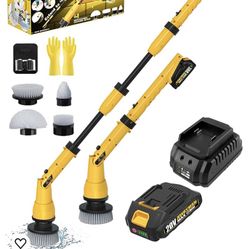 1000RPM Electric Spin Scrubber, 20V Cordless Cleaning Brush with Adjustable Extension Arm, 4 Replaceable Cleaning Heads, Hook and Gloves, 1 Hour Fast $40Elk Grove, CA