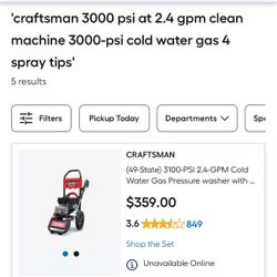 CRAFTSMAN 3000 PSI at 2.4 GPM Clean Machine 3000-PSI Cold Water Gas 4 Sp$230Stockton, CA