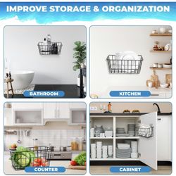 Wire Baskets, 2Pcs, 11x 4.7x 4.7 In Rust Resistant Metal Basket Strong Adhesive - Perfect for Organizing & Storing in Kitchen Bathroom Dorm Shelves $14Elk Grove, CA