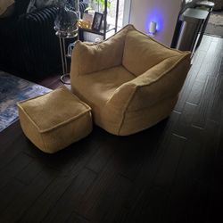 Modern Yellow Bean Bag Chair & Ottoman- Excellent Condition $80Stockton, CA