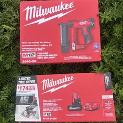 Milwaukee M12 Pin nailer 23g with 5ah HO battery with charger combo. BRAND NEW$240Elk Grove, CA
