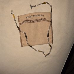 Vintage 1990s Kerry MacBride Sterling Silver & Tiger Eye Link Necklace