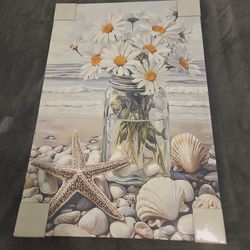 Blue Beach Canvas Wall Art Painting White Flowers Blooming Wall Canvas Print 16x24inch$10Rancho Cordova, CA