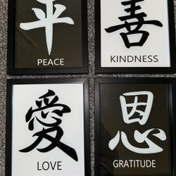 Chinese Choreography Glass Wall Art 11x 14 Peace, Kindness, Love, and Gratitude$20Sacramento, CA