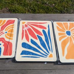 Set of 3 Modern Abstract Plastic Wall Art Panels, 16x12" Each, Vibrant Colors