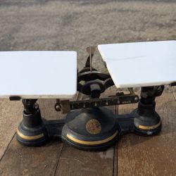 Antique Cast Iron Balance Scale with Porcelain Plates – A. H. & T. Co. New York