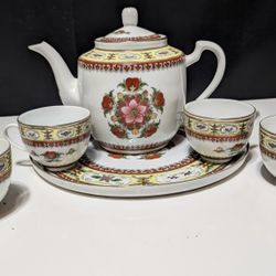 Vintage Chinese Porcelain Tea Set - Teapot with Tray and 4 Cups - 1 Cup Damaged$12Stockton, CA