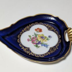 Vintage Edelstein Bavaria Cobalt Blue Porcelain Dish with Floral Design