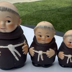 Vintage Salt Pepper Shakers & Sugar Bowl Goebel Monk Friar Tuck W Germany Brown $15Lathrop, CA