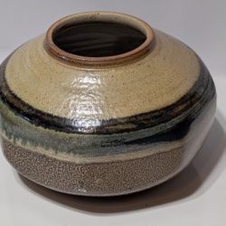 Large Studio Pottery Vase 10x6.5in Signed Mather Handmade Glazed Ceramic Vessel