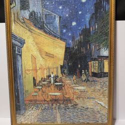 Framed Van Gogh Café Terrace at Night Puzzle Wall Art 19.5x26" Vintage Decor Piece