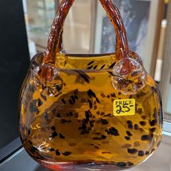 Leopard Print Murano Style Handbag Purse Handblown Amber Glass Designer Vase$25Stockton, CA