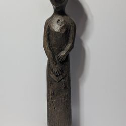 Handcarved 21" Wooden Abstract Tribal Monk Statue on Stand Rustic Decor