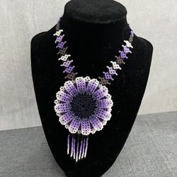 HUICHOL purple flower BEADED NECKLACE handmade MEXICO FOLK ART FLOWER$40Sacramento, CA