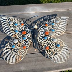 Vintage Metal Butterfly Wall Art - 24x15" Decorative Garden Accent with Colored Inlays