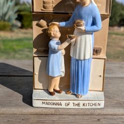 Vintage 1961 Madonna of the Kitchen Ceramic Wall Plaque / Statue 7.5" x 4.5" Hand Painted AR Japan