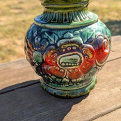Vintage Green West German Pottery Vase with Floral Motif Numbered 332-18 Decorative Piece$20Stockton, CA