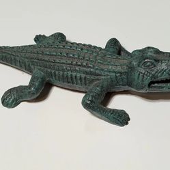 Vintage 8.5" Cast Iron Crocodile Figurine - Rustic Green Patina Alligator Decor
