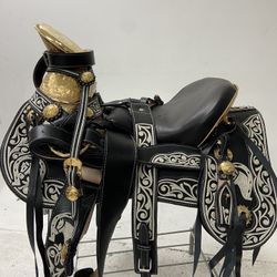 Preciosa Montura Charra Súper Pitiada Original Con Herrage,estribos Y Fuste Cachapeado En Oro$4,200Stockton, CA