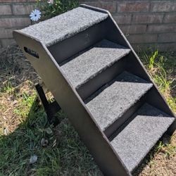 Wooden Pet Stairs with Carpet Tread - 4 Steps with Side Handles for Small Animals