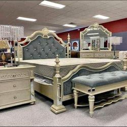 New 4 PC Queen Bedroom Set With Queen Bedframe Dresser Mirror And Nightstand On Sale Now Don't Miss$899Antioch, CA