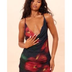 Pretty little thing sheer mesh black floral slip mini dress 6 $20Sacramento, CA