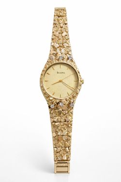 Bulova 14K Yellow Gold Diamond Quartz Wristwatch Heavy Nugget Bracelet 77.4g$6,200Stockton, CA