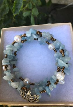 Aquamarine with freshwater pear wrap bracelet with lotus flower charm 3 wraps$18Stockton, CA