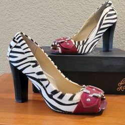 Used Naughty Monkey zebra print block heels.$15Elk Grove, CA