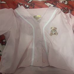 Cult Favorite Women’s Cropped Pink Baseball Jersey With Teddy Bear Size Large$11Galt, CA