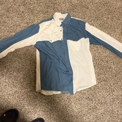 Express Rider Blue And White Medium Mens Button Up Long Sleeve Over-shirt Reverse Colored$15Sacramento, CA