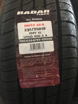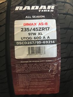 235/60R17 RADAR DIMAX AS-8$369Sacramento, CA